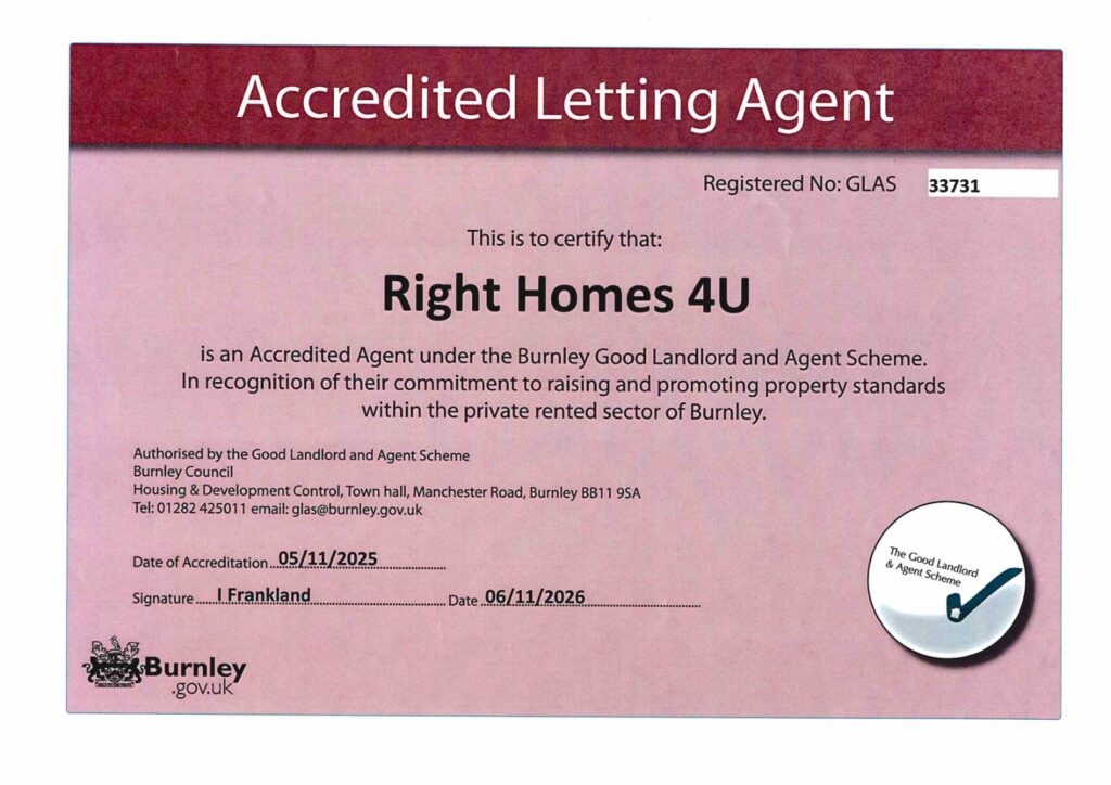 RIGHTHOMES4U is proud to be a Burnley Council Accredited Real Estate Agent. We specialise in residential lettings, property management, and tenant placement, offering reliable, hands-on service for landlords and tenants alike.